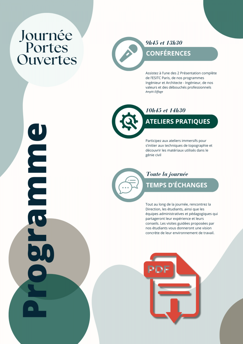 ☛ Les conférences : Une présentation complète de l’ESITC Paris pour découvrir nos programmes Ingénieur et Architecte-Ingénieur, nos valeurs et nos débouchés professionnels